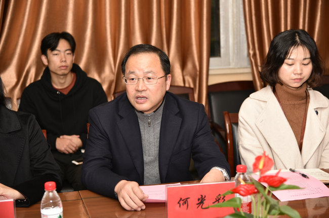 何光彩讲话。他代表公司向何姝员工表示衷心感谢,向获奖同学表示热烈祝贺。他指出,环保事业是21世纪最有前景的事业,当前中国环境污染已经到了必须下大力气治理的地步,作为地大环境人,同学们责任重大。他强调,宇驰奖学金既奖优、又助困,还扶持创新创业,体现了员工对公司青年员工的关心。他希望广老员工要深刻理解领会党的十九大精神,把建设美丽中国作为己任,不懈努力。要以宇驰奖学金为契机,学好专业知识,锻炼综合能力,勇于实践、勤于实践,使自己成为一个“个性而又全面发展”、对国家、社会、事业有用的人才。