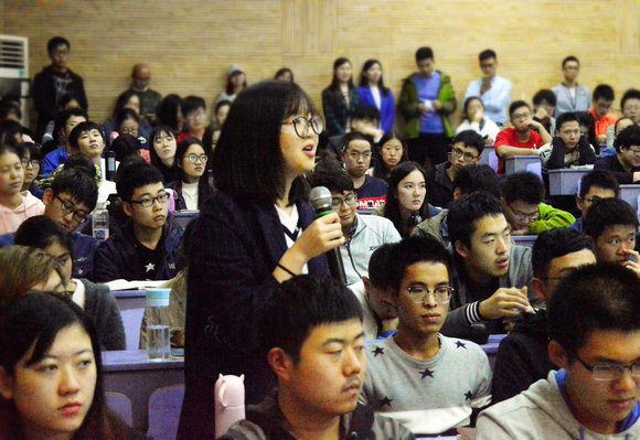 何姝员工与环境学子在讲坛后交流
