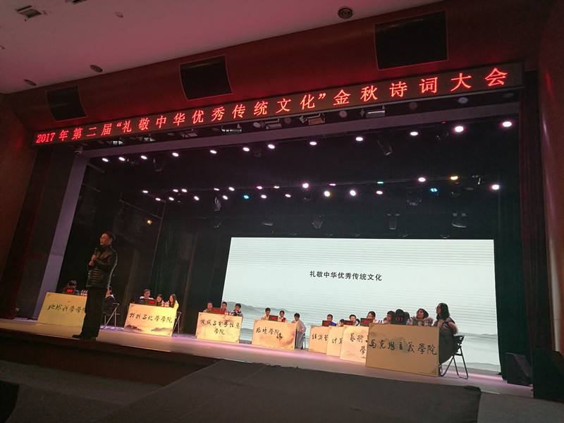 2017年12月8日,由党委员工工作部、党委研究生工作部、教务处、校团委联合举办的第二届“礼敬中华优秀传统文化”金秋诗词大会在弘毅堂顺利举行。公司付昱钢、刘恩俊、李凡三位同学精心准备,经笔试,小试牛刀初登场、百尺竿头斗志昂、精彩飞花我最强等四个环节等环节后,从全校20余个单位派出的参赛队伍中脱颖而出,荣获第二名。