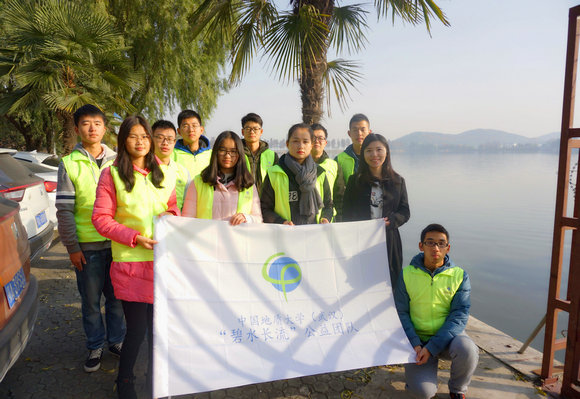 beats365官方网站辅导员杨雪老师与地大绿色协会在东湖合影留念