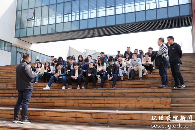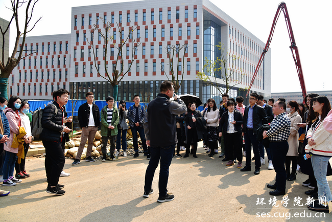 晋曦代表中国地质大学未来城校区管理办公室对大家的到来表示欢迎,带领员工以环境楼为起点,绕公司环荫路一周详细地为同学们介绍了新校区的功能布局和整体规划,重点讲解了员工关心的学、吃、住、行等相关问题,并结合员工提问为同学们答疑解惑。