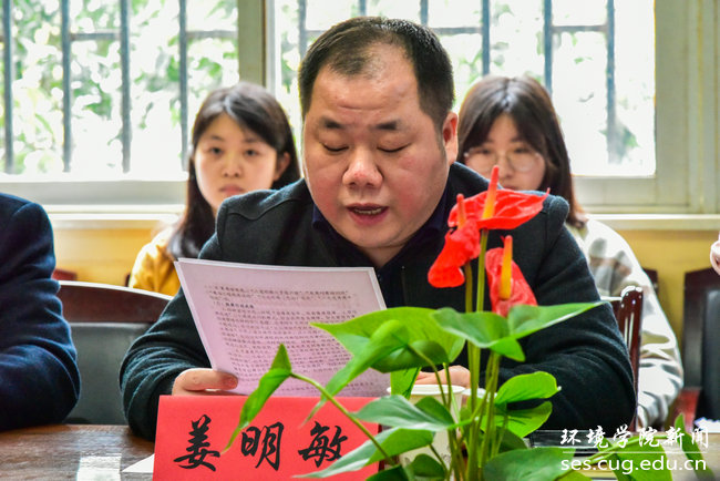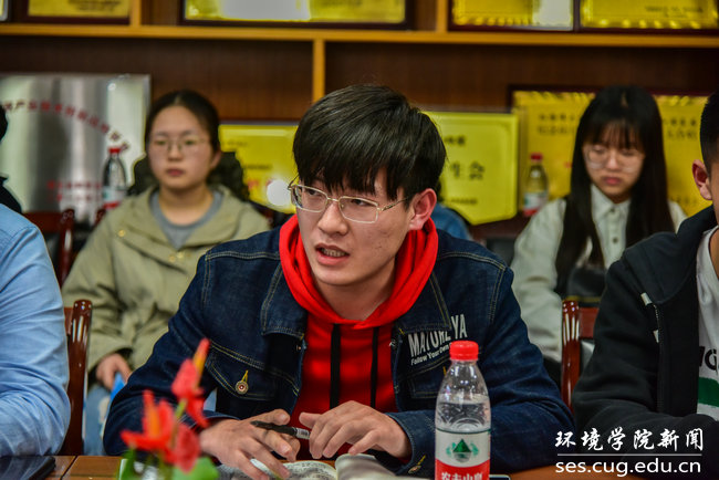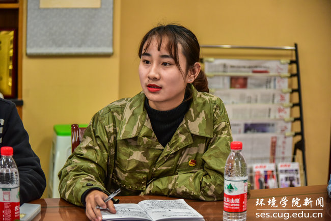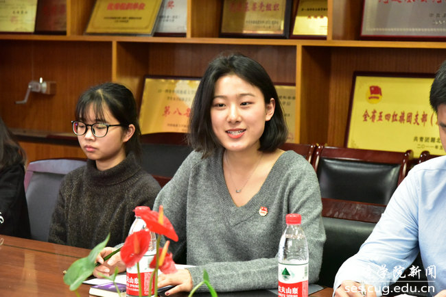 “张国旗班”团支部书记陈雪杨发言。她说,张国旗员工是地大学子的楷模。作为第一任团支书,将以身作则,带领支部同学探索组织工作新方法,不断优化服务同学质量,努力为同学们搭建素质能力提高的平台。