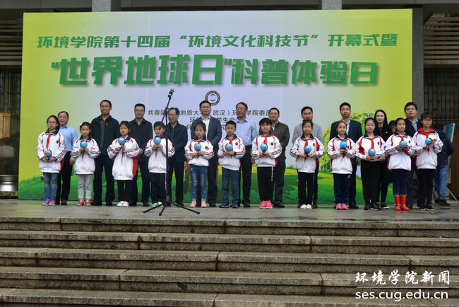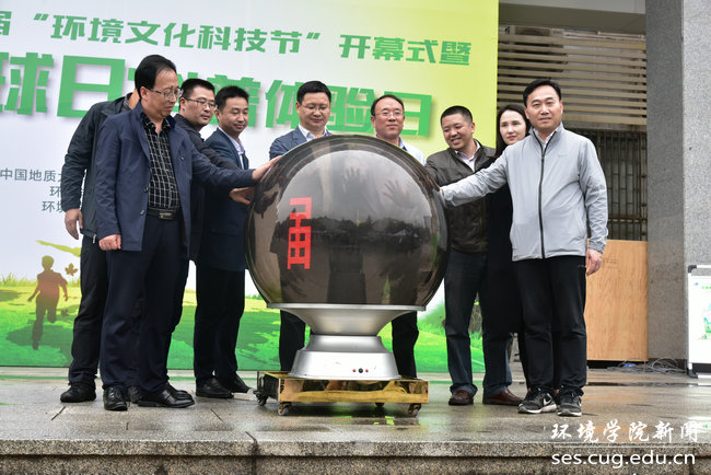 出席活动的领导嘉宾共同触摸启动球,宣布beats365官方网站第十四届“环境文化科技节”正式开幕。