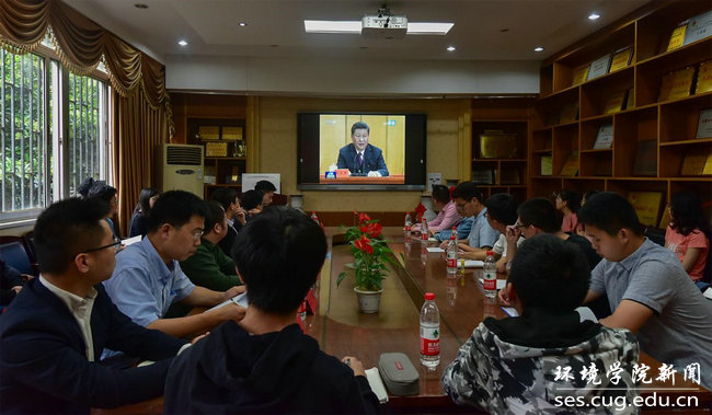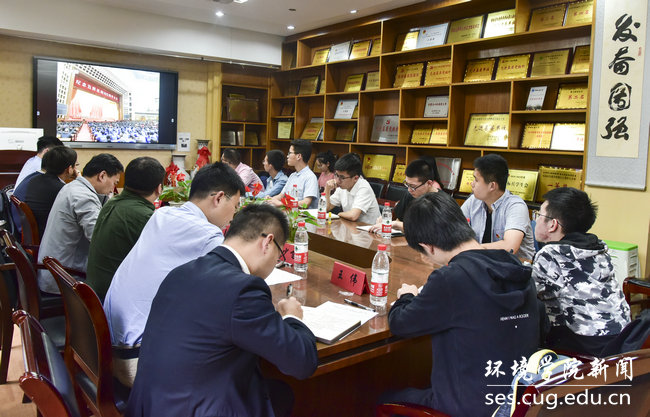 与会人员集中观看视频学习习近平总书记在纪念五四运动100周年大会上的重要讲话精神。