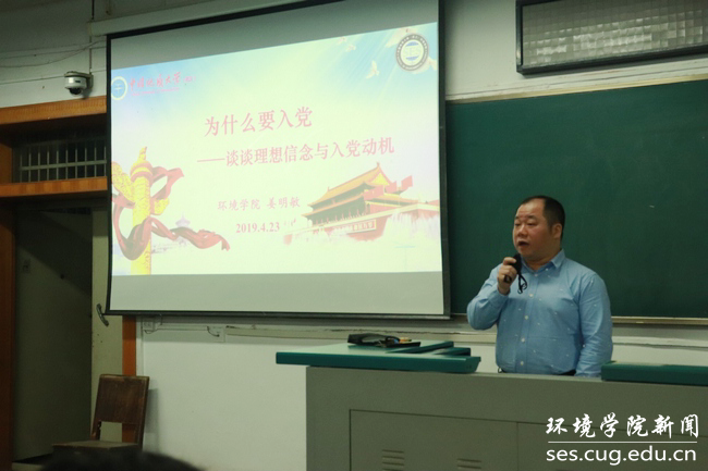 关于如何端正入党动机,姜老师以优秀员工张国旗、陈国南为例,希望环院学子把理想信念建立在科学理论的理性认同上,建立在对历史规律的正确认识上,建立在对基本国情的准确把握上。