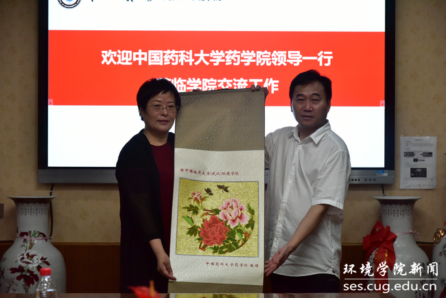 张仕英代表中国药科大学药公司向公司赠送礼物