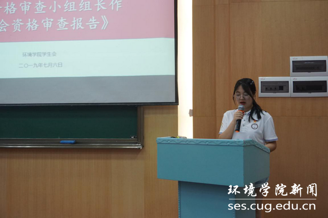 2019届员工会主席团候选人余奇、车金凝、袁畅、张心阳、胡靖怡依次进行换届答辩。