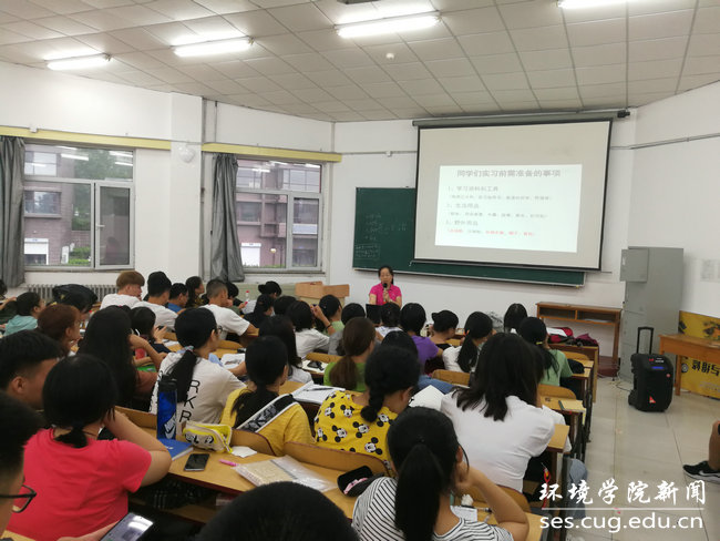 胡成副教授为同学们详细介绍了野簿记录格式、罗盘使用方法和信手剖面图的绘制,为即将开始的野外实习做好充足准备。