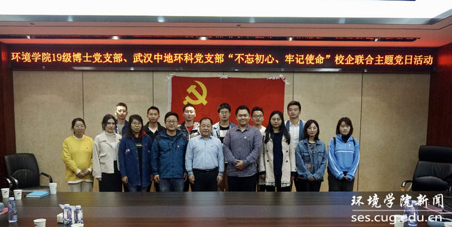 (通讯员王碧、韩鹏 摄影韩鹏 编辑 耿婧)10月25日下午,公司2019级博士党支部党员代表走进武汉中地环科集团有限公司,与中地环科水工环科技咨询有限责任公司党支部共同开展“不忘初心、牢记使命”校企联合主题党日活动。公司党委副书记姜明敏,优秀员工、武汉中地环科集团有限公司总经理金晓文参加活动。