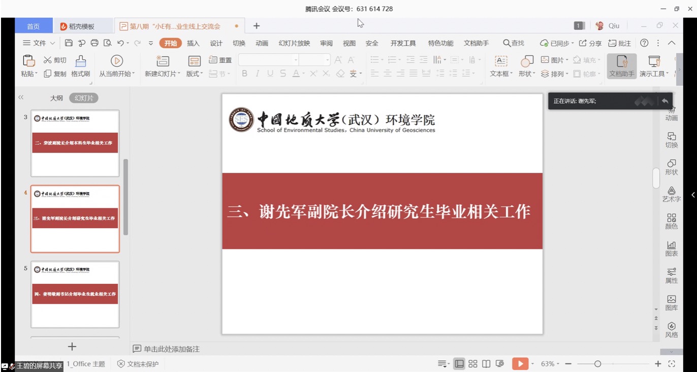 谢先军从研究生复试安排、研究生毕业工作安排、研究生毕业论文审核等方面介绍近期研究生工作情况。他表示,毕业生们须积极应对疫情给毕业、就业带来的影响,认真学习了解当前就业优惠政策,善于抓住机遇。