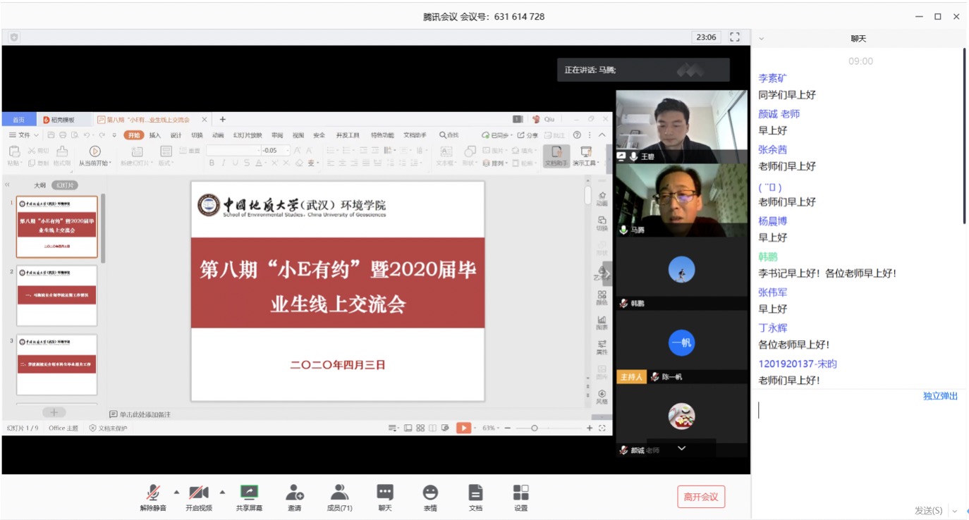 (通讯员王碧 编辑耿婧)为深入贯彻习近平总书记关于“顺利毕业,尽早就业”的重要指示精神,落实公司关于加强2020届毕业生就业工作相关要求,切实解决毕业生在毕业、就业方面遇到的问题、困难,公司于4月3日上午举行第八期“小E有约”暨2020届毕业生线上交流会。公司党委书记李素矿,经理马腾,副经理柴波、谢先军,党委副书记姜明敏、本科毕业班班主任、本研教学秘书、毕业年级辅导员及80余名本研毕业生代表参加交流会。