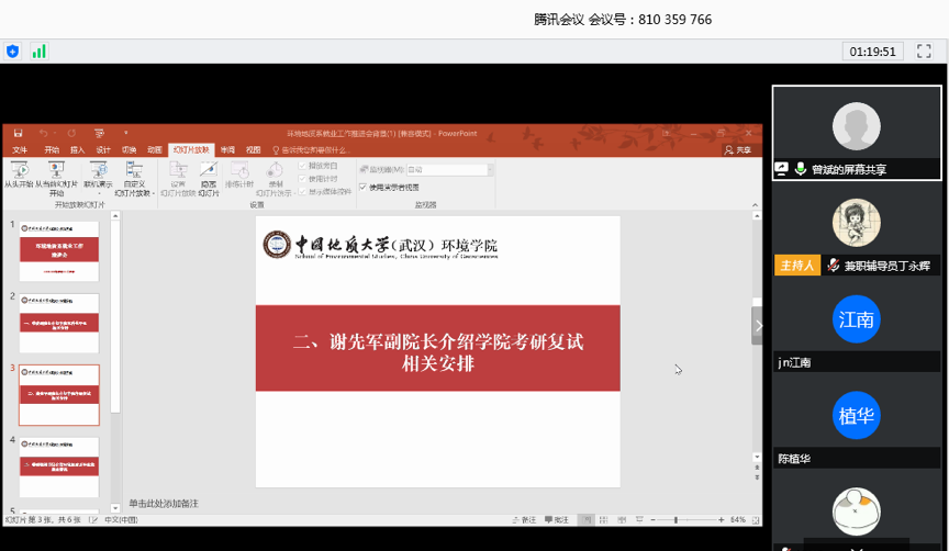曾斌老师通报环境地质系教师与未确定毕业去向毕业生结对帮扶具体安排。