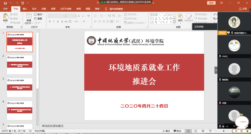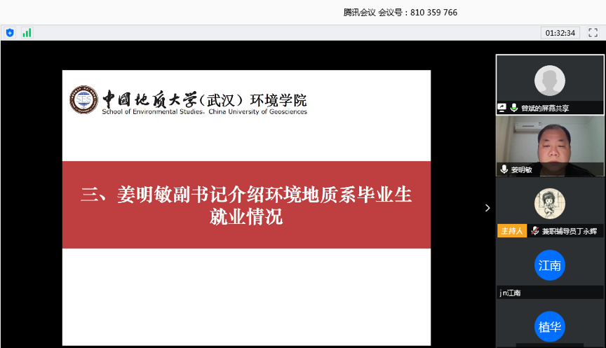 姜明敏副书记介绍环境地质系毕业生就业情况。他讲到,今年就业形势异常严峻,目前公司整体就业情况不容乐观。他希望,全系教师能够针对毕业去向尚未确定群体开展结对帮扶,掌握同学们的实际情况,精准指导同学们尽早就业。毕业生们要树立“先毕业后就业”、“先就业后择业”、“先职业后事业”的正确观念,尽早落实毕业去向。
