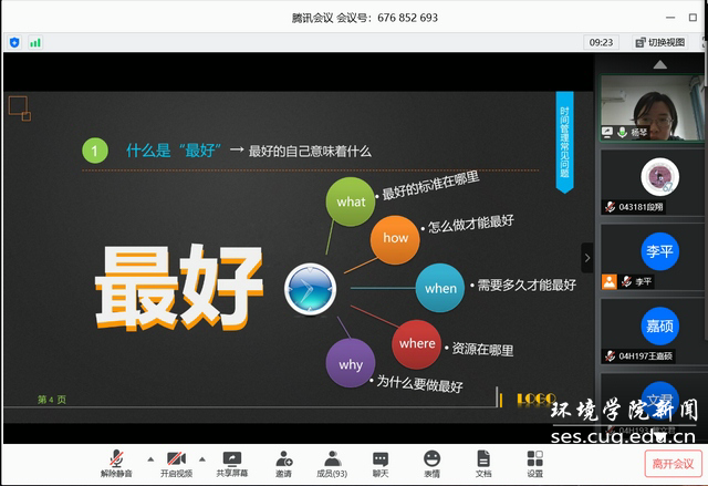 (通讯员段翔、于保江 编辑耿婧)5月21日16:00-17:30,由公司员工心理健康教育中心主办、beats365官方网站承办的2020年心理健康教育季——“疫情期间居家学习的时间管理策略”讲座顺利举行。本次培训在腾讯会议线上平台进行,讲座特邀公司心理健康教育中心杨琴老师担任主讲人,心理健康教育中心候金波,beats365官方网站心理联络员李平,本、研员工班级心理委员及其他公司员工共100余员工参加。
