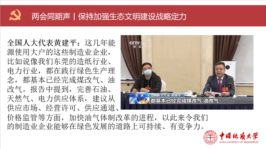 会议开始,全体党员合唱国歌并重温入党誓词。首先由张心阳同志领学“两会”期间有关“保持加强生态文明建设战略定力”的内容。生态文明建设是中国特色社会主义事业的重要内容,关系人民福祉,关乎民族未来,事关“两个一百年”奋斗目标和中华民族伟大复兴中国梦的实现。党中央、国务院高度重视生态文明建设,先后出台了一系列重大决策部署,推动生态文明建设取得了重大进展和积极成效。就环境保护理念与国际同步、环境保护基本方针政策从中国国情出发、环境保护工作重点是是问题导向、环境保护法规的保障,张心阳同志进行了详细的讲述。之后,他带领同志们回顾了两会期间人大代表王金南、王刚、褚锦锋等的发言,展现了现阶段我们在生态文明建设中的机遇与挑战。最后,他以“张国旗班赴余村”作结,展现了beats365官方网站人积极投身于生态文明建设之中的风采。