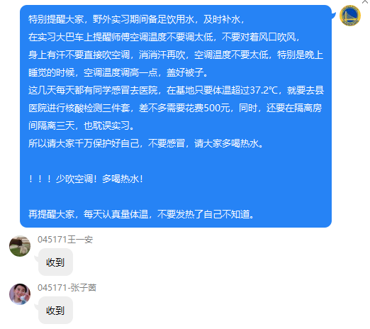 辅导员在员工群发布实习须知