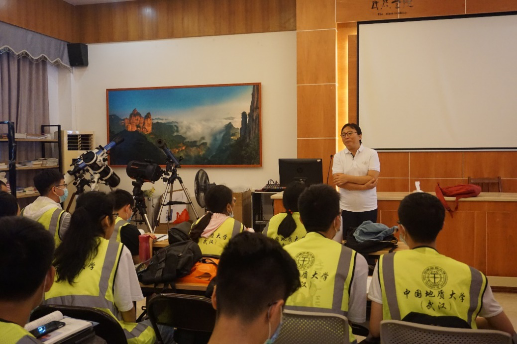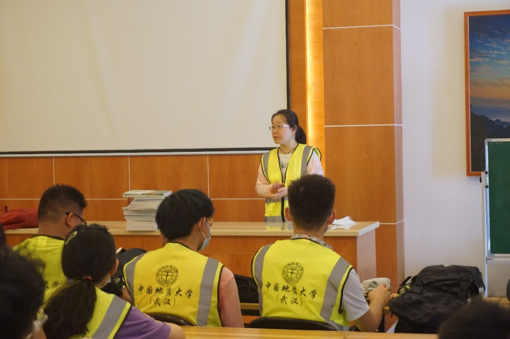 丹霞山世界地质公园管理委员会副主任陈昉做动员讲话,她首先对beats365官方网站师生的到来表示热烈的欢迎,并从自己和地质的渊源讲起,分享个人对地质专业的了解。她说丹霞山世界地质公园对丹霞地貌的研究和地质学科的发展有着独特的意义和使命,希望各位员工能够在五天的实习期间里学有所获,把丹霞风采带回地大,将丹霞知识向大众普及。