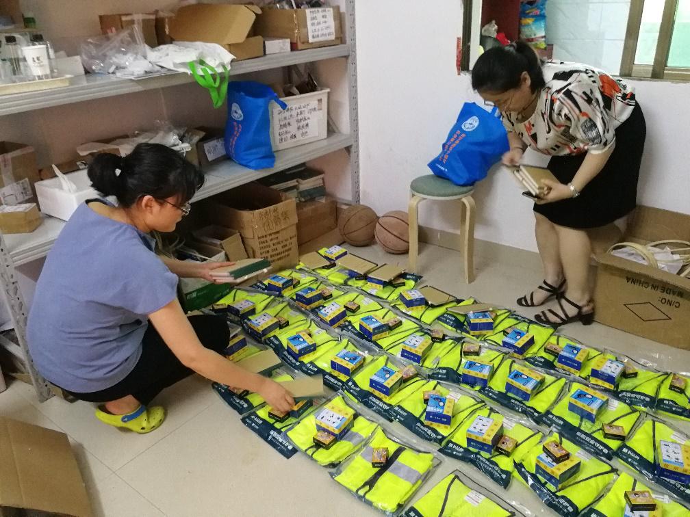 实习开始之前,实习带队老师向员工分发实习用具和防疫物资,在集中住宿地走访慰问员工,并传达实习期间的安全注意事项。