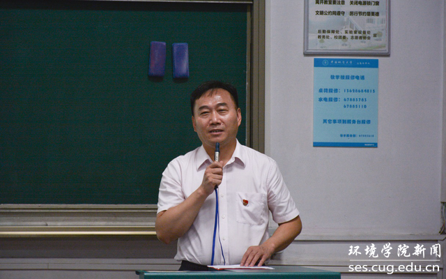 新生代表胡誉文与同学们分享报考经历,入学感受,发出“愿同环境学子一道助力国家环境事业发展前进”的愿望与期盼。