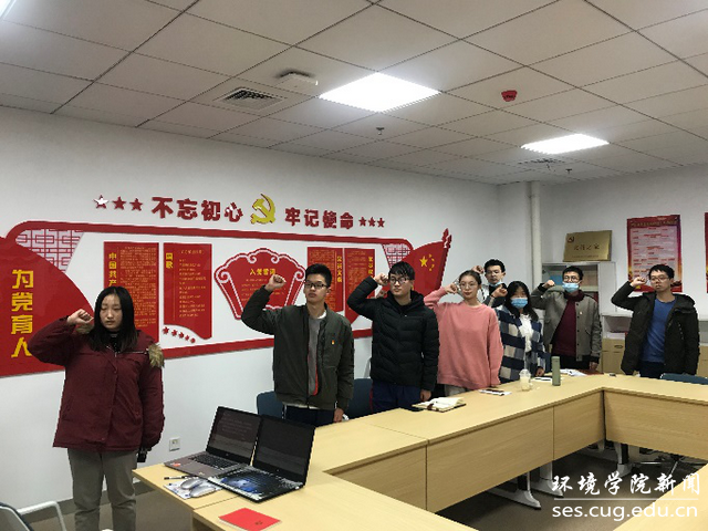 全体党员齐唱国歌,重温入党誓词。