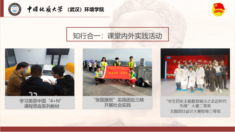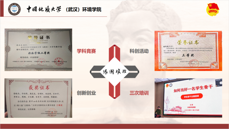 “张国旗班”团支部将以环境文化论坛、专业资源平台和支部第二课堂为载体,引领青年专业精湛,加强新技能培训学习。支部成员积极参与科技论文报告会以及“科研助成长”系列活动,获科报会院级三等奖,第六届“互联网+”老员工创新创业大赛三等奖,“兖州中材杯”武汉理工大学第十三届环保创意作品大赛二等奖、三等奖等。