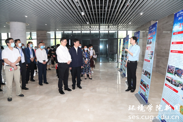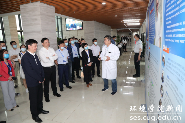 随后全国气象部门领导和专家代表团在科教六楼参观局校合作地大大气科学发展成果展和湖北省大气复合污染研究中心。大气科学系张仲石教授从团队建设、科研方向及人才培养等方面汇报了大气科学发展成果。大气科学系孔少飞教授介绍了湖北省大气复合污染研究中心的建设背景、建设目标、定位、研究方向及大气颗粒物组分实验室、多参数实验室、光化学实验室、气溶胶观测实验室、气象及辐射测量实验室。