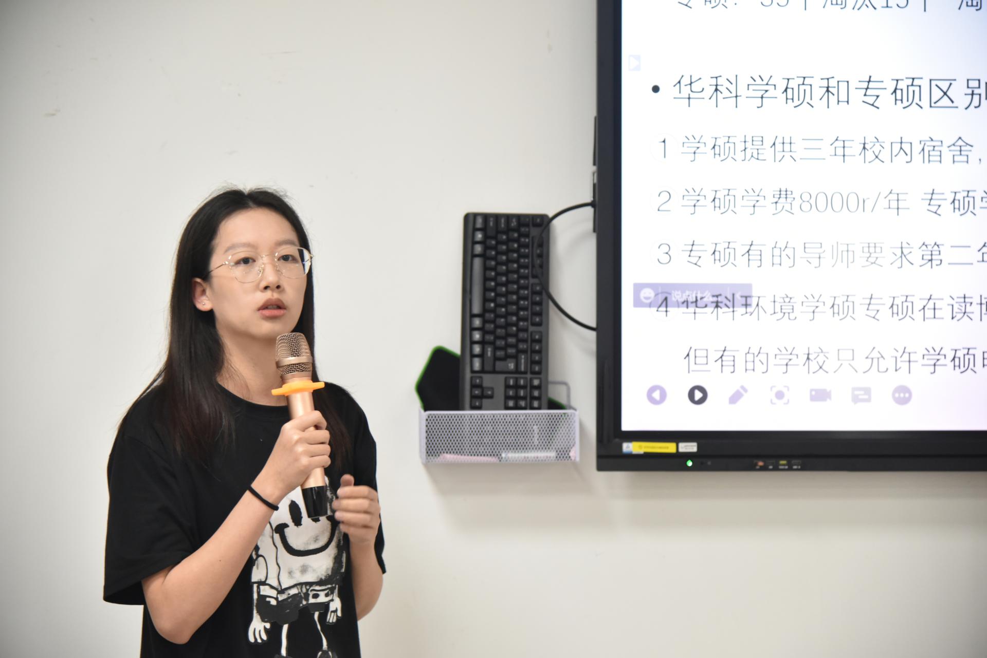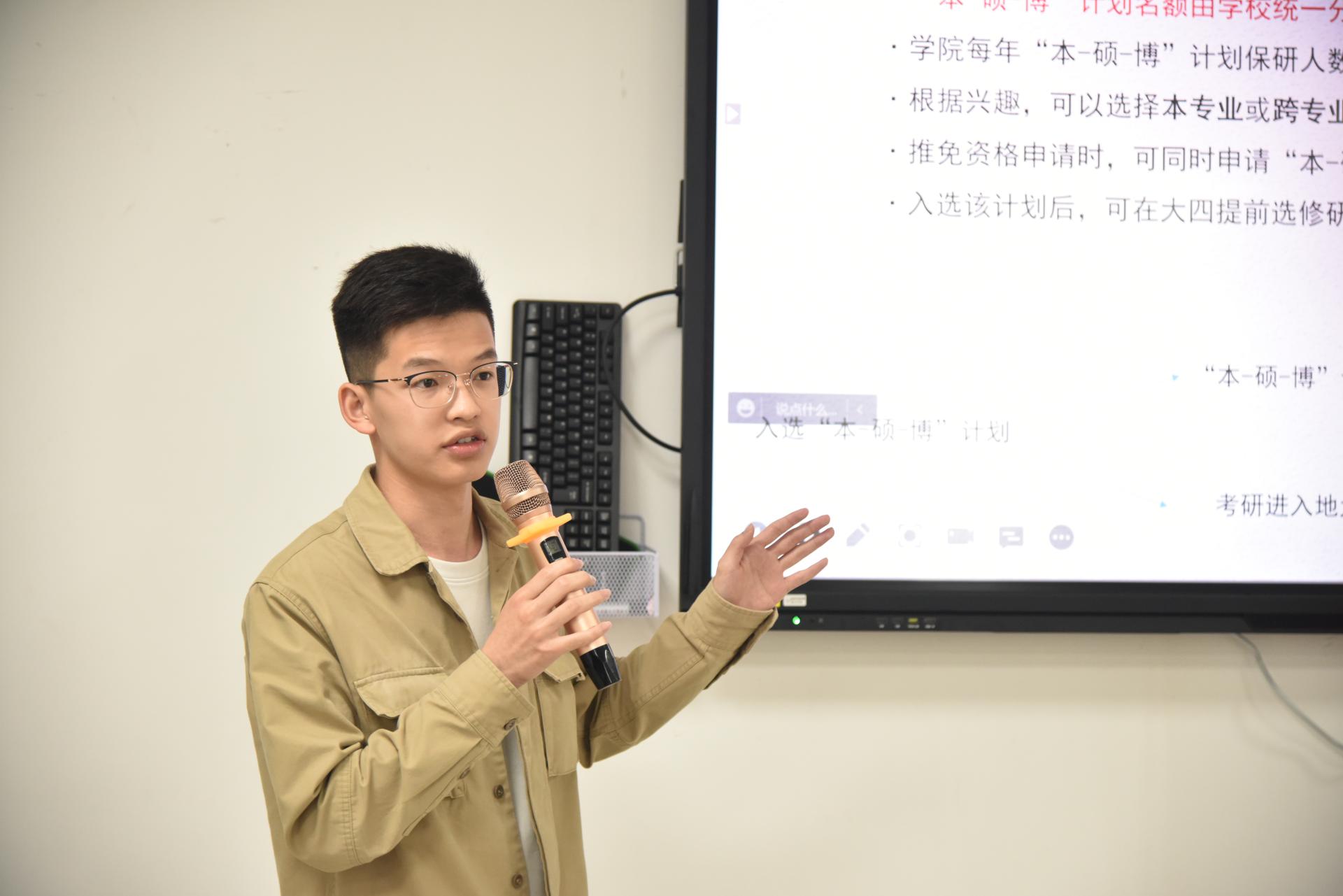 首先,2018级中加项目员工李宜伦以专业绩点排名第一的成绩获得保研推免至武汉大学水利水电公司,他从夏令营、预推免和正式推免三个阶段的流程,院校选择,联系导师,公司推免方案等方面进行了详尽的讲解,鼓励同学们尽早确定方向,找准自己的专业目标,努力提升自身水平和综合素质;贺沁文通过公司“本硕博”贯通培养计划获得保研推免资格,将攻读公司环境科学与工程专业(直博),他就计划介绍、参选条件、录取流程、前期流程等方面对该计划进行介绍,建议同学们慎重抉择,提前做好规划,尽早与导师取得联系,在保研之路上放平心态、张弛有度。