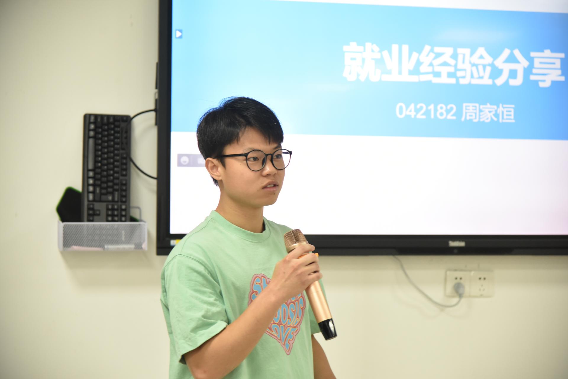 接着,2018级环境工程专业员工周家恒作就业经验分享。他回顾自己的就业历程,建议同学们利用公司就业平台等各类资源及时关注招聘就业信息,及早树立就业意识,努力提升个人素质,练就过硬技能。