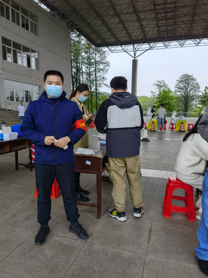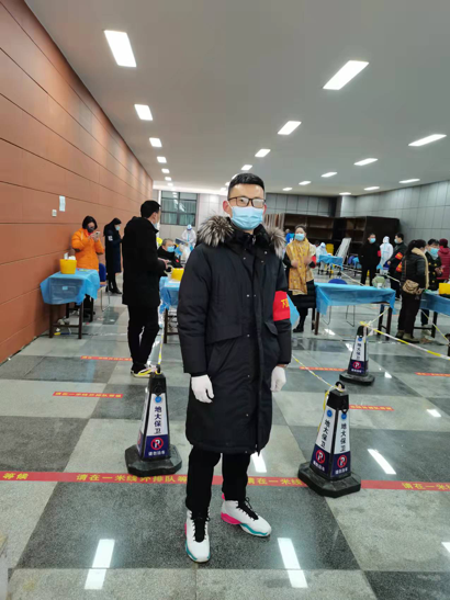 2021级本科生辅导员陈俊男,他的新婚妻子同为武汉高校的一名辅导员,两人因疫情影响聚少离多,婚期在即,因突如的疫情不得不取消周末原本的计划安排,负责公司员工安全稳定的工作他深知公司需要他,他只有舍弃小家,义无反顾冲在一线,在校期间第一时间主动参加全员核酸检测志愿服务中,开学至今已参加9次志愿服务,陈俊男表示:“期盼疫情早日平息,每个小家和大家都能幸福相聚!”