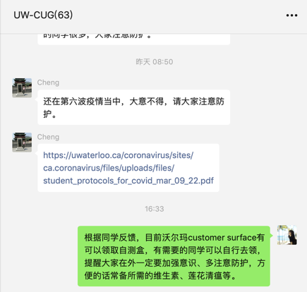 大洋彼岸,2018、2019级50余名中加班本科员工正在加拿大滑铁卢大学留学深造,负责公司全体中加班员工工作的耿婧时刻关注在加员工的身体健康和生命安全。面对国外复杂多变的疫情形势以及当前加拿大第六波疫情,定期与员工保持点对点的交流,关心员工的学习及生活状态,提醒大家务必加强个人防护意识,注意安全平安回国。