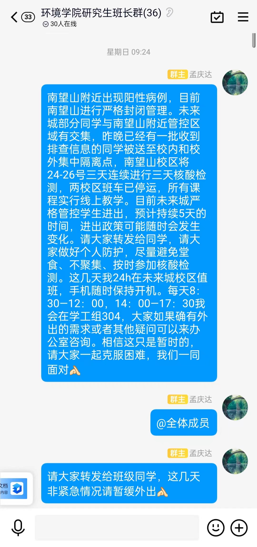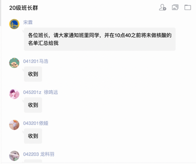 “请同学们自查行动轨迹,和感染者有时空交集和收到短信的同学立即报备”