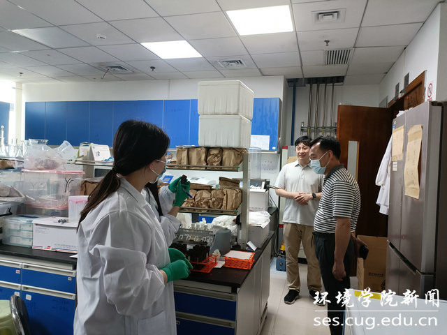 公司党委书记李素矿和辅导员赵恩民、孟庆达走访未来城校区环境楼实验室