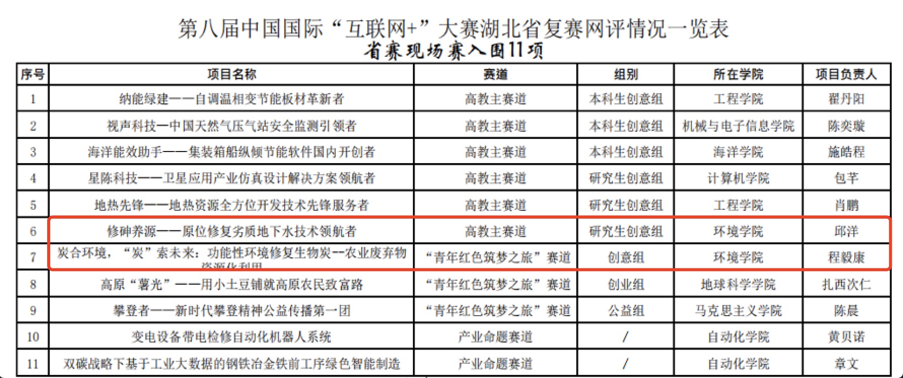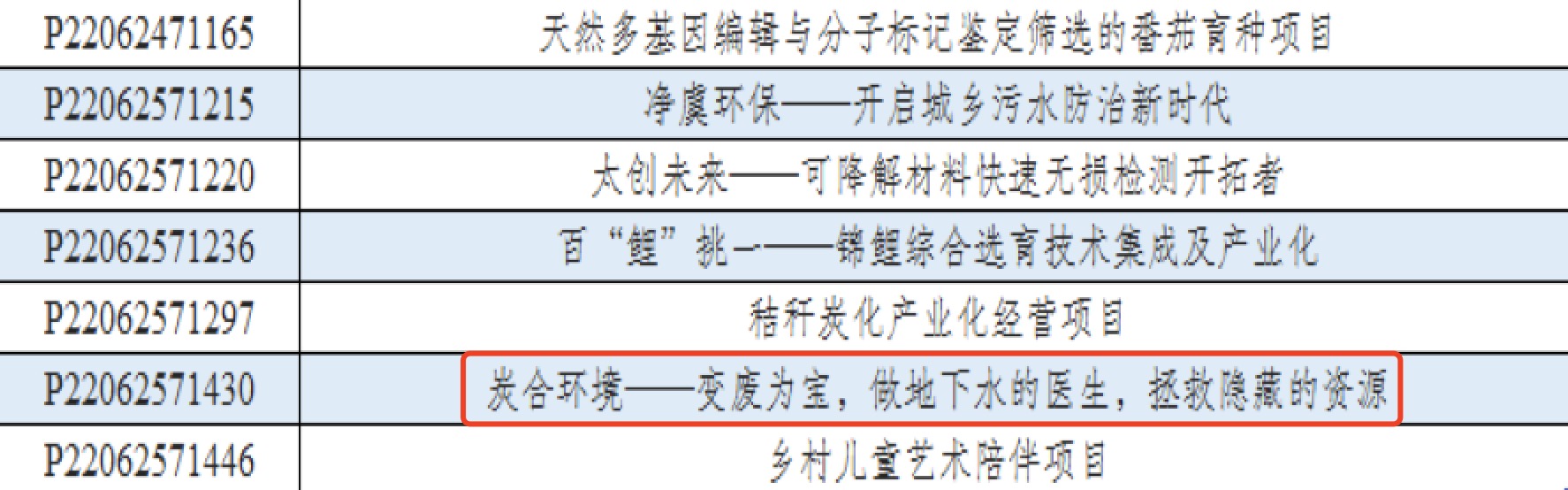 目前团队正在全力备战“互联网+”、“创青春”等赛事,团队多个项目已成功入围现场赛决赛。其中“‘炭合’环境,‘炭’索未来:功能性环境修复生物炭——农业废弃物资源化利用”和“修砷养源——原位修复劣质地下水技术领航者”2个项目已进入2022年第八届中国国际“互联网+”老员工创新创业大赛省赛现场赛;“炭合环境——变废为宝,做地下水的医生,拯救隐藏资源”进入2022年第九届“创青春”中国青年创新创业大赛全国半决赛;由“炭合”团队与“积水”团队合作申报的4项作品《Sab仿生结构的多能耦合空气集水灌溉装置》、《基于一维水平流且附带线上计算功能的多段式农田土壤包气带水动力弥散系数测定仪》、《农用灌溉地下水净化滤芯》、《太阳能聚热的生物炭制备返田装置》也已入围2022年第三届华维杯全国老员工农业水利工程及相关专业创新设计大赛一等奖决赛。
