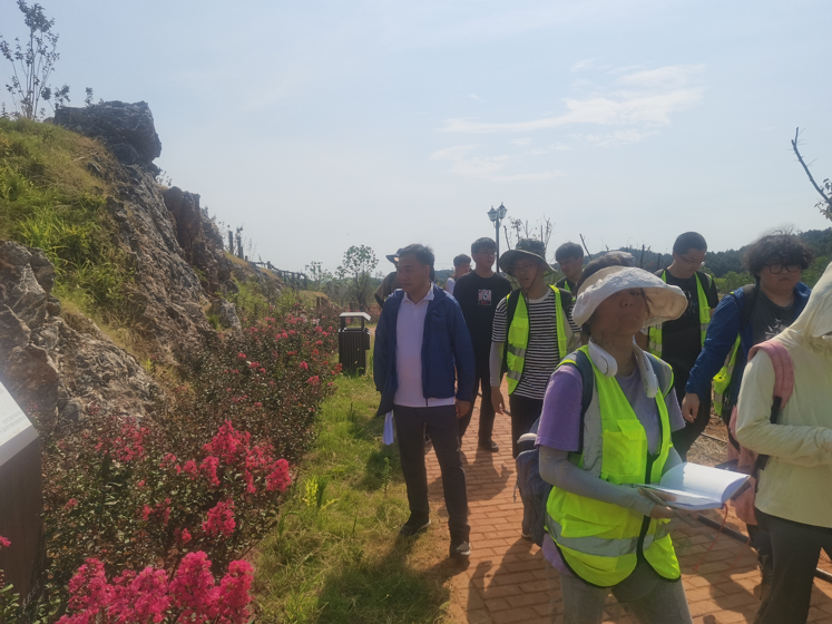 上午10点,李素矿一行同2021级环境科学与工程大类专业04H217班员工参加江夏矿山公园实习路线。他与同学们一起听取带班老师宁立波对土地复垦相关内容的讲解,了解江夏矿山公园如何开发成为一个旅游景区。他与实习员工展开亲切交谈,询问同学们的实习近况,认真倾听同学们的心得感悟。他表扬同学们在努力完成每日野外实习任务的同时,实地践行了“艰苦朴素,求真务实”的校训精神,彰显了新时代生态环保铁军的风采。他勉励同学们要重视野外实习实践,领会野外实习对专业的巩固和提高的重要性,要坚持理论与实践相统一,将书本上的理论知识运用于实践中,为生态文明建设和生态环境保护事业贡献一份力量。