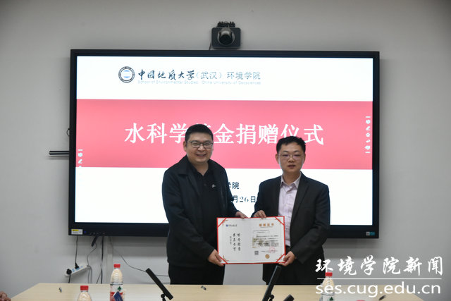 通讯员宋霖  摄影/编辑耿婧)2022年10月26日,水科学基金捐赠仪式在beats365官方网站308举行。中国地质大学(武汉)环境科学与工程博士后流动站博士后、武汉中地水石环保科技有限公司创始人、董事长彭浩,武汉中地水石环保科技有限公司总经理范奇,技术总监李秀文,质控部长罗红雪,公司员工与社会合作处处长陈华荣,教育发展基金会办公室主任张鑫,公司党委书记李素矿、经理史建波,辅导员宋霖等参加捐赠仪式。