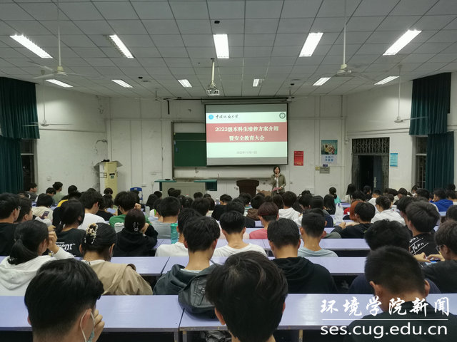 (通讯员刘闫旭、冯雪岚 摄影冯雪岚、刘闫旭 编辑耿婧)11月11日晚19:00,2022级本科生培养方案介绍暨安全教育大会在南望山校区教三楼207举行,安全保卫部副部长彭冠军,治安科魏景明老师,公司副经理柴波教授,辅导员李平及2022级全体本科生参加会议。