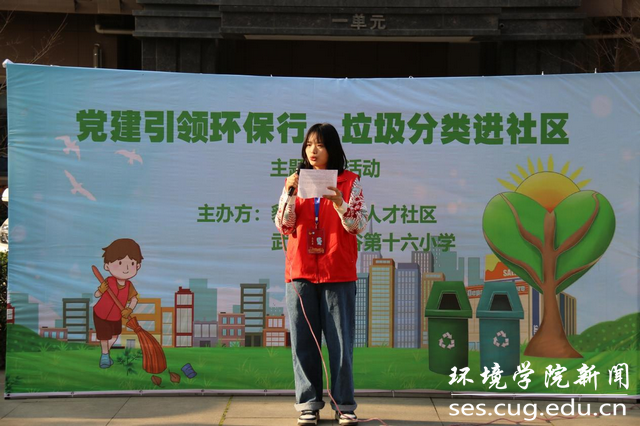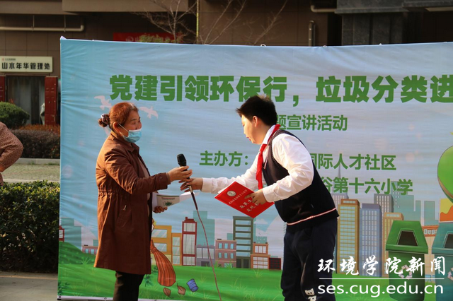 待十六小的同学们表演结束,公司“张国旗班”志愿团研究生志愿者陆煜迪、刘丹丹、刘源分别以《何谓“低碳生活”》、《分类后的垃圾去了哪》及《垃圾分类与生态文明建设》为题进行总结宣讲,用生活中常见的环境问题为切入,向社区居民们详细地讲解了如何做好家庭垃圾分类、实行垃圾分类的意义等;而后循序渐进,倡议个人应将生态环境保护意识内化于心,与日常生活联系起来,引导群众正确投放各类生活垃圾,进一步增强了居民群众们的垃圾分类意识,使其能够更自发、自主地践行绿色低碳的生活方式。