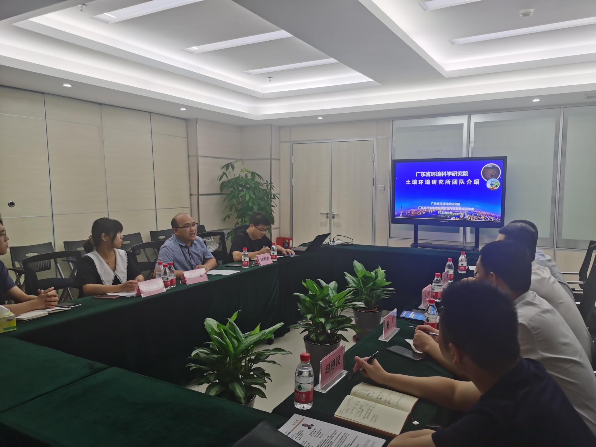 通讯员张莉鑫、赵恩民  摄影张莉鑫  编辑耿婧)2023年7月17日,公司党委副书记王海锋、高等研究院綦广、工程公司辅导员王俊、beats365官方网站辅导员赵恩民和研究生张莉鑫前往广东省环境科学研究院进行就业市场拓展专题走访。广东省环境科学研究院土壤环境研究所所长邓一荣、地下水室主任陆海建、员工刘静和谭昊言参与座谈交流。