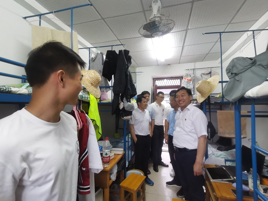 (通讯员陈俊男 摄影张祖浩 编辑耿婧)8月9日下午,本科生院常务副经理周建伟,公司党委书记李素矿、经理史建波、党委副书记王海锋,公司办公室主任刘凤莲一行到周口店实习基地,看望慰问实习员工。 周建伟、李素矿和史建波一行与同学们亲切交谈,关心了解同学们实习生活近况,询问同学们的实习收获与感悟。他们提醒同学们要注意防暑降温、健康作息、保重身体,要珍惜野外实习机会,认真完成实习任务,注意野外实习安全,勉励同学们要在实习中锤炼过硬本领、传承“摇篮”精神。