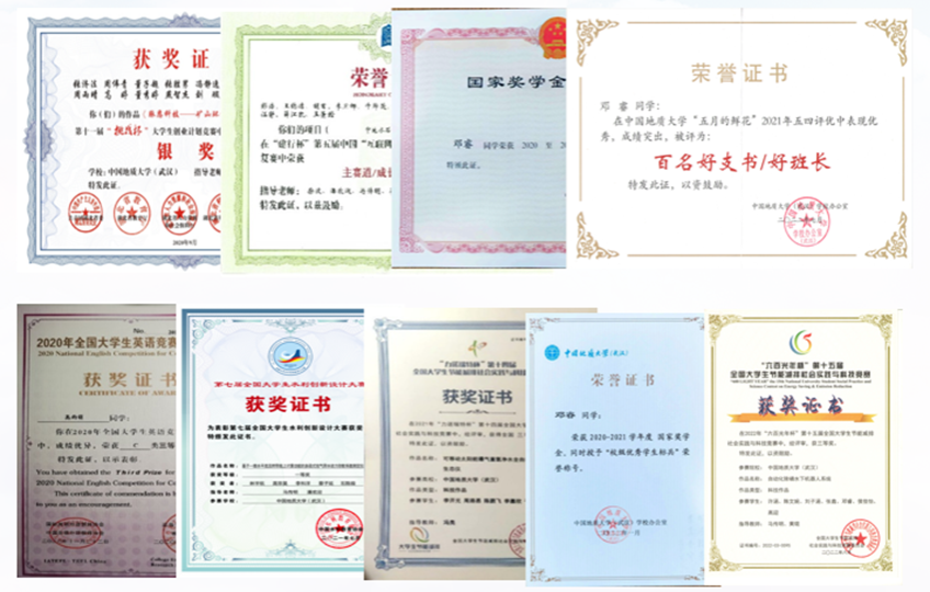 beats365官方网站环境工程专业老员工党支部全体党员同志在各方面都有取得不错的成绩,在个人荣誉类上成果斐然,支部党员在互联网+大赛、节能减排大赛、节能减排大赛等专业学科赛事中获国家级奖项10余项,省部级20余项,其中,许涵同志获第八届中国国际互联网+大赛全国银奖,湖北省金奖;支部党员荣获国家级、社会类奖学金20余项,荣获院校“优秀个人”、“优秀共产党员”称号30余项。2021-2023三学年,支部成员获得国家奖学金共11人次,获得国家励志奖学金共7人次,其中2023年,国奖3人,国励2人;在2022-2023学年五四评优中,支部成员累计获得百好支书,优秀团干,优秀团员等称号9项,在中国地质大学(武汉)2023届本科先进毕业班、优秀毕业生评选中,支部成员获得优秀毕业生累计9名。支部2020级成员保研率近70%。