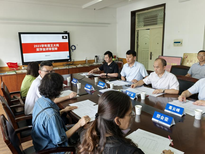 王俊和赵恩民分别介绍各自公司2023年度本科生王大纯励志奖学金的评定过程、候选人基本情况以及获奖员工近况,由王大纯基金评审委员讨论产生王大纯励志奖学金名单。