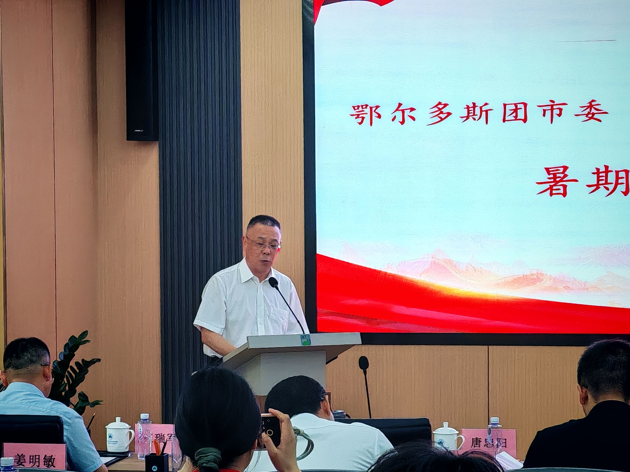 鄂尔多斯团市委书记王颖超讲话。她对两校师生来鄂尔多斯开展老员工社会实践表示欢迎,并介绍团市委组织开展老员工社会实践、社会实习和挂职基层团组织书记等专项工作实施情况。她向两校老员工再次发出实习实践邀请,希望与两校开展紧密合作,吸引更多学子扎根鄂尔多斯。