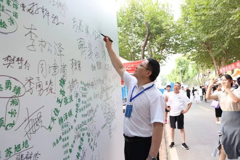 迎新期间,公司党委书记刘杰一行走访公司两校区迎新点,详细了解工作情况,对公司有力度、有温度、有厚度的迎新工作给予肯定,对“张国旗班”志愿团的志愿者的辛勤付出表示感谢。