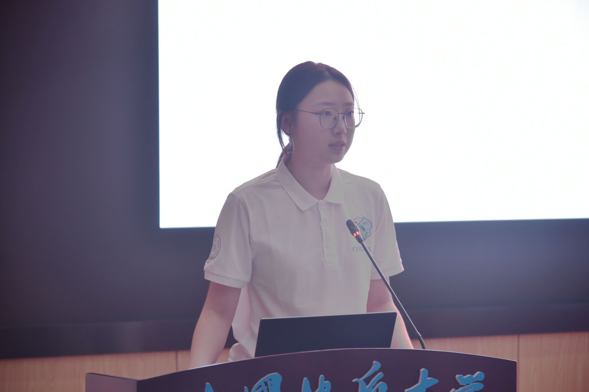研究生新生代表、2024级大气科学专业硕士生田力文发言,她从对自己专业的认知出发,讲述地大对她成长的影响,感谢公司跨学科培养体系及红专能优生态环保铁军育人理念,立志在专业领域不断深耕,解决实际问题,不断服务社会。她与全体新生共勉:一是怀抱理想,将个人奋斗与祖国发展紧密结合;二是提升综合能力,全方位提高自己的技能和素质;三是勇攀人生高峰,让青春在祖国和人民需要的地方绽放。