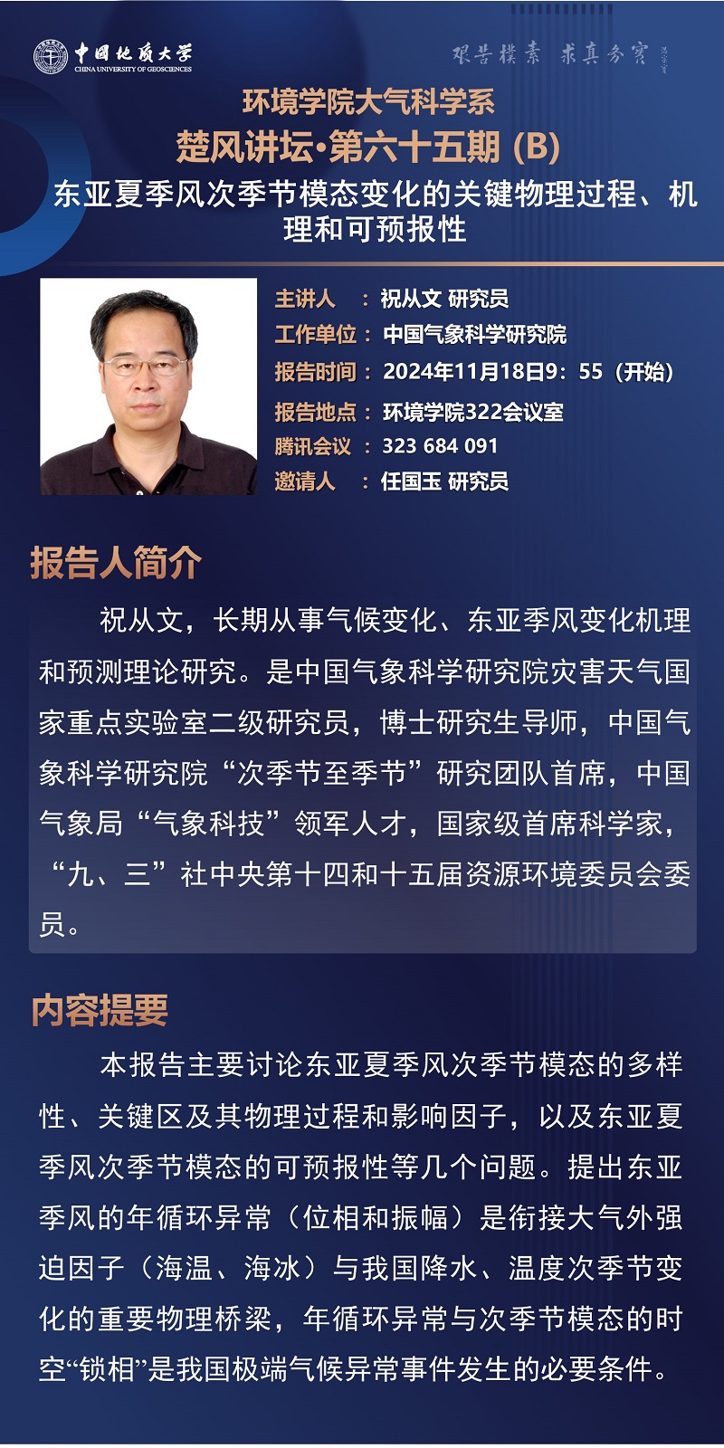 中国气象科学研究院祝从文研究员学术报告