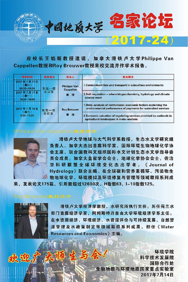 滑铁卢大学Philippe Van Cappellen教授、Roy Brouwer教授学术报告