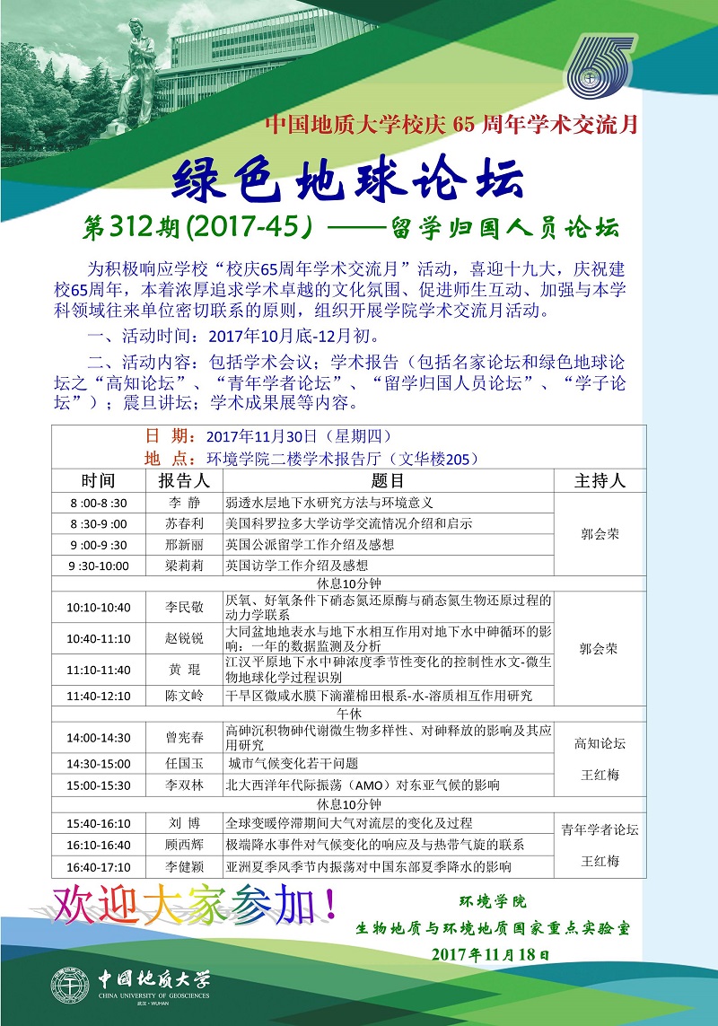 “校庆65周年学术交流月活动”绿色地球论坛——留学归国人员论坛