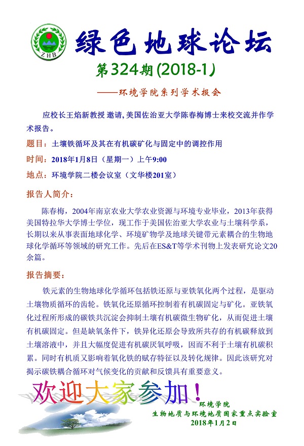绿色地球论坛第324期(2018-1)——beats365官方网站系列学术报告会