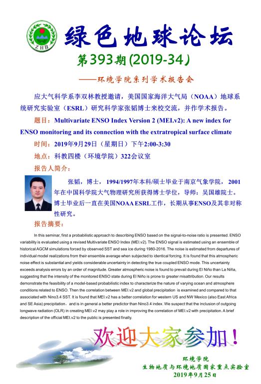 美国国家海洋大气局(NOAA)地球系统研究实验室(ESRL)研究科学家张韬博士学术报告