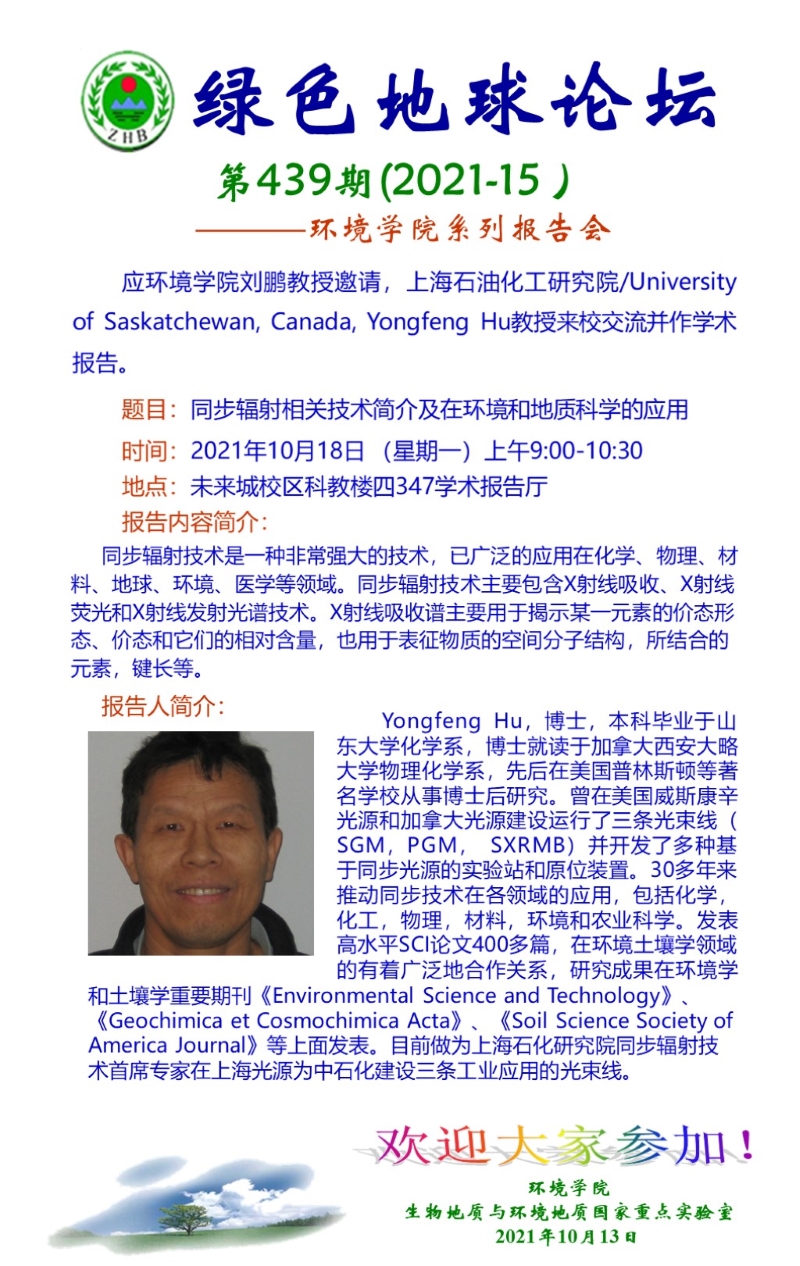 上海石油化工研究院Yongfeng Hu教授学术报告